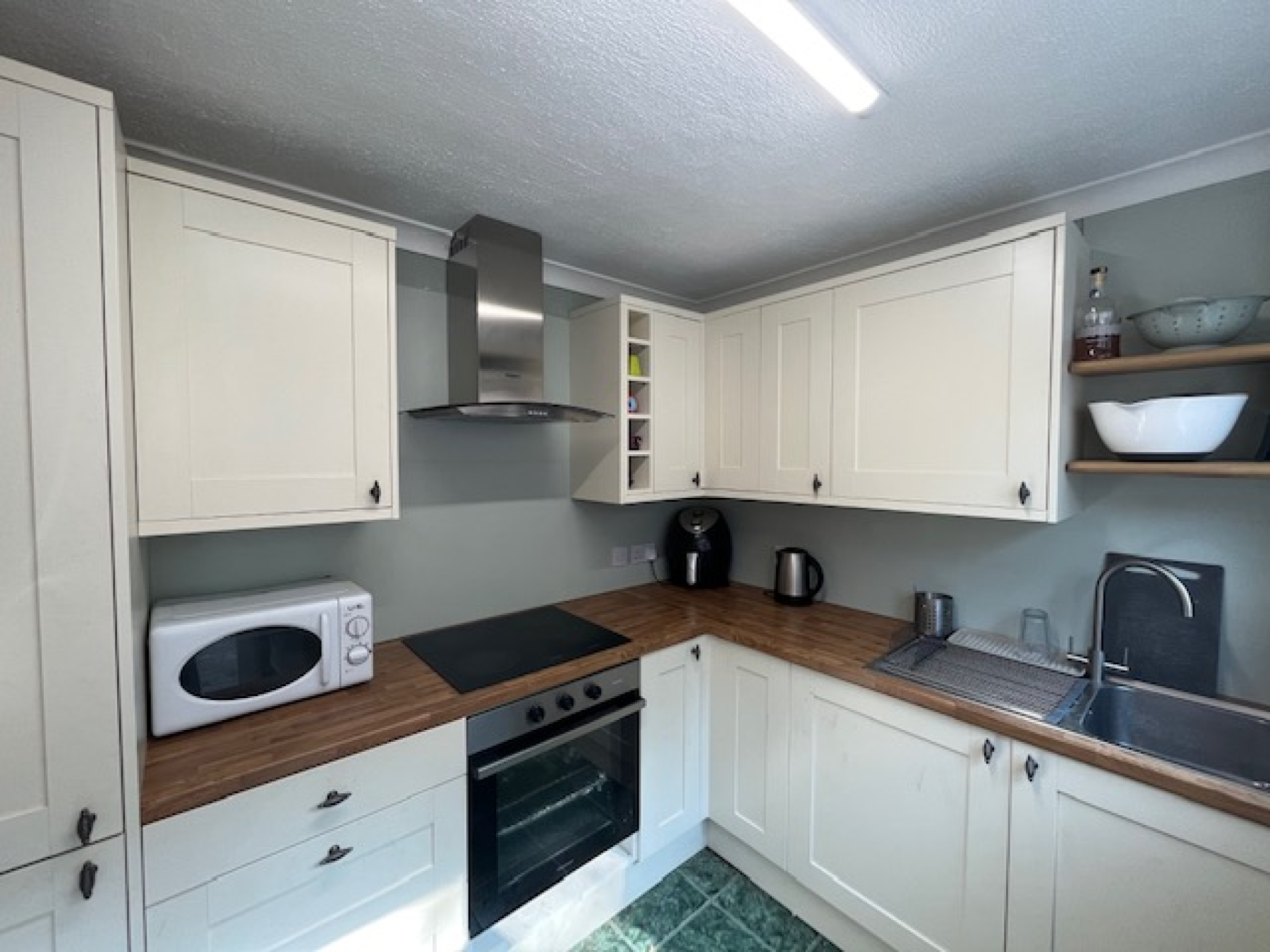 Upstairs there are two very good size double bedrooms, both with fitted wardrobes and a further single bedroom, ideal for a smaller child or as an office. The family bathroom is lovely...bath with shower over, WC, extra large sink within a vanity unit with drawers and a heated towel rail.