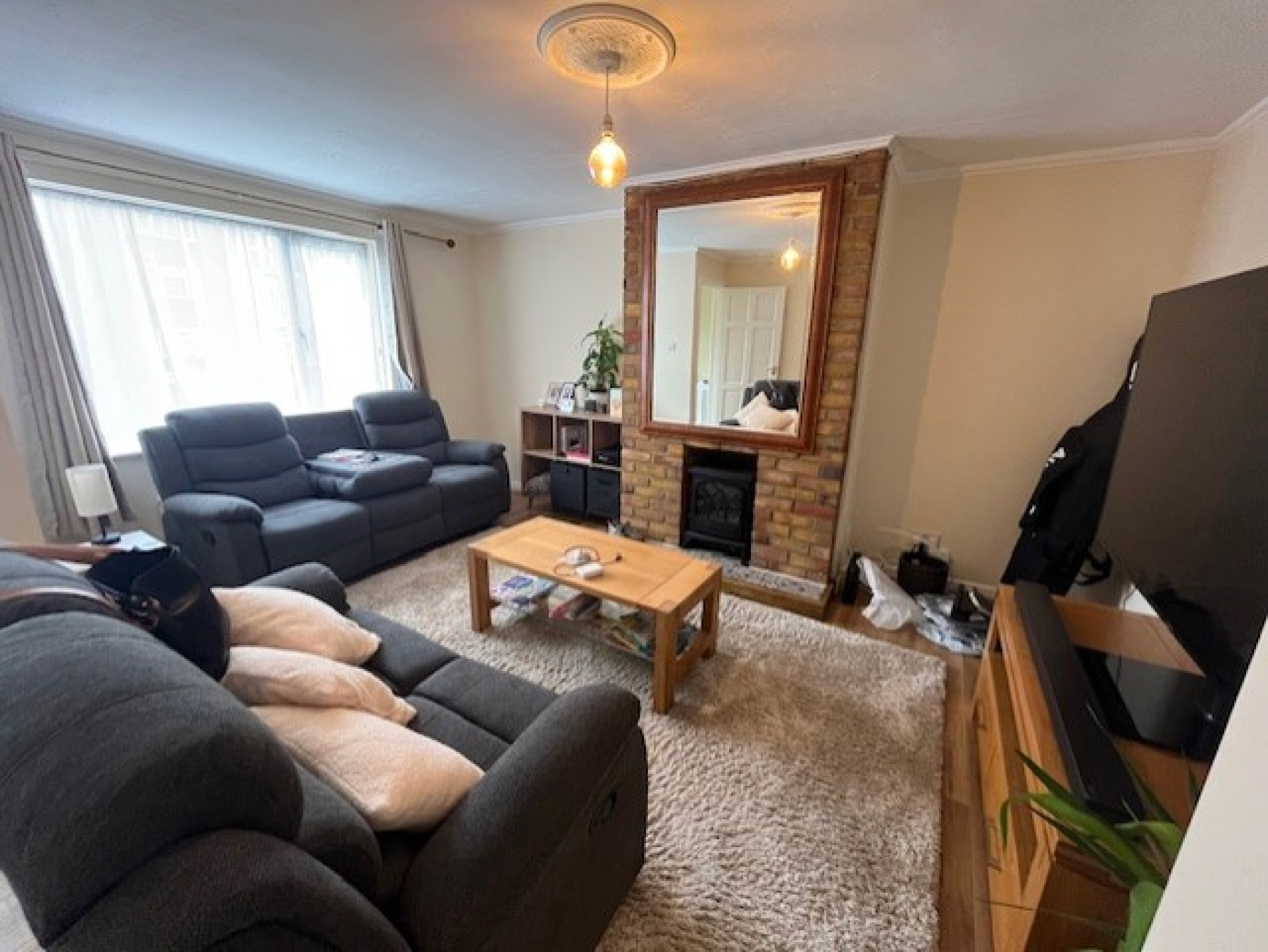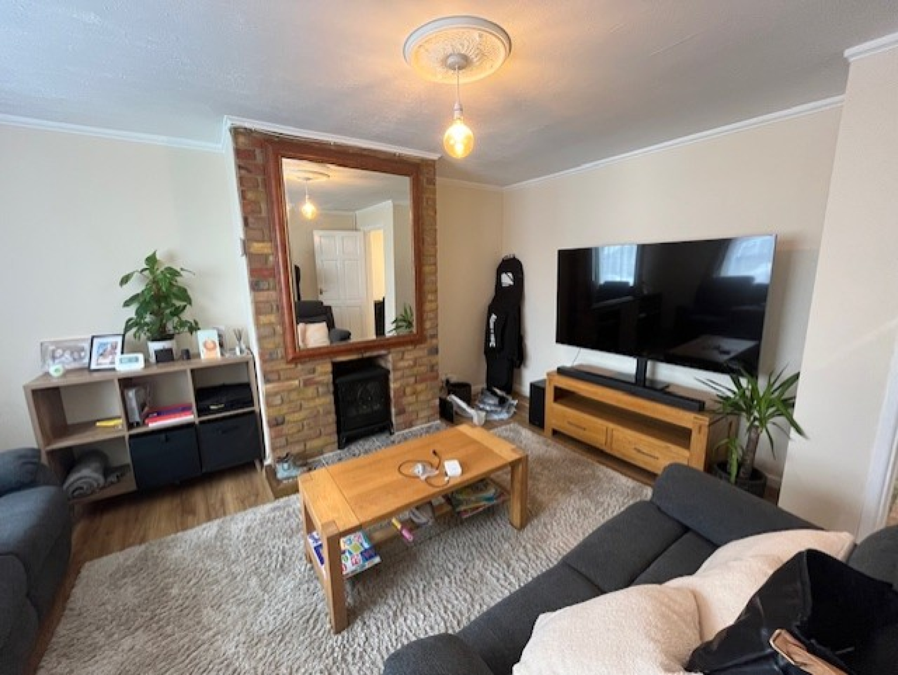 This fabulous property is entered via a convenient hallway, large enough to house coats, shoes and bags. The living room is a very good size, has newly laid laminate flooring and features a lovely exposed brick fireplace with an electric woodburner...perfect for those chilly nights! From the living room is the kitchen/diner which spans the entire back of the house. The kitchen was recently refitted with plenty of work and storage space and intergrated appliances. In addition to the kitchen/diner, there is a small but very useful conservatory offering some extra family living space.